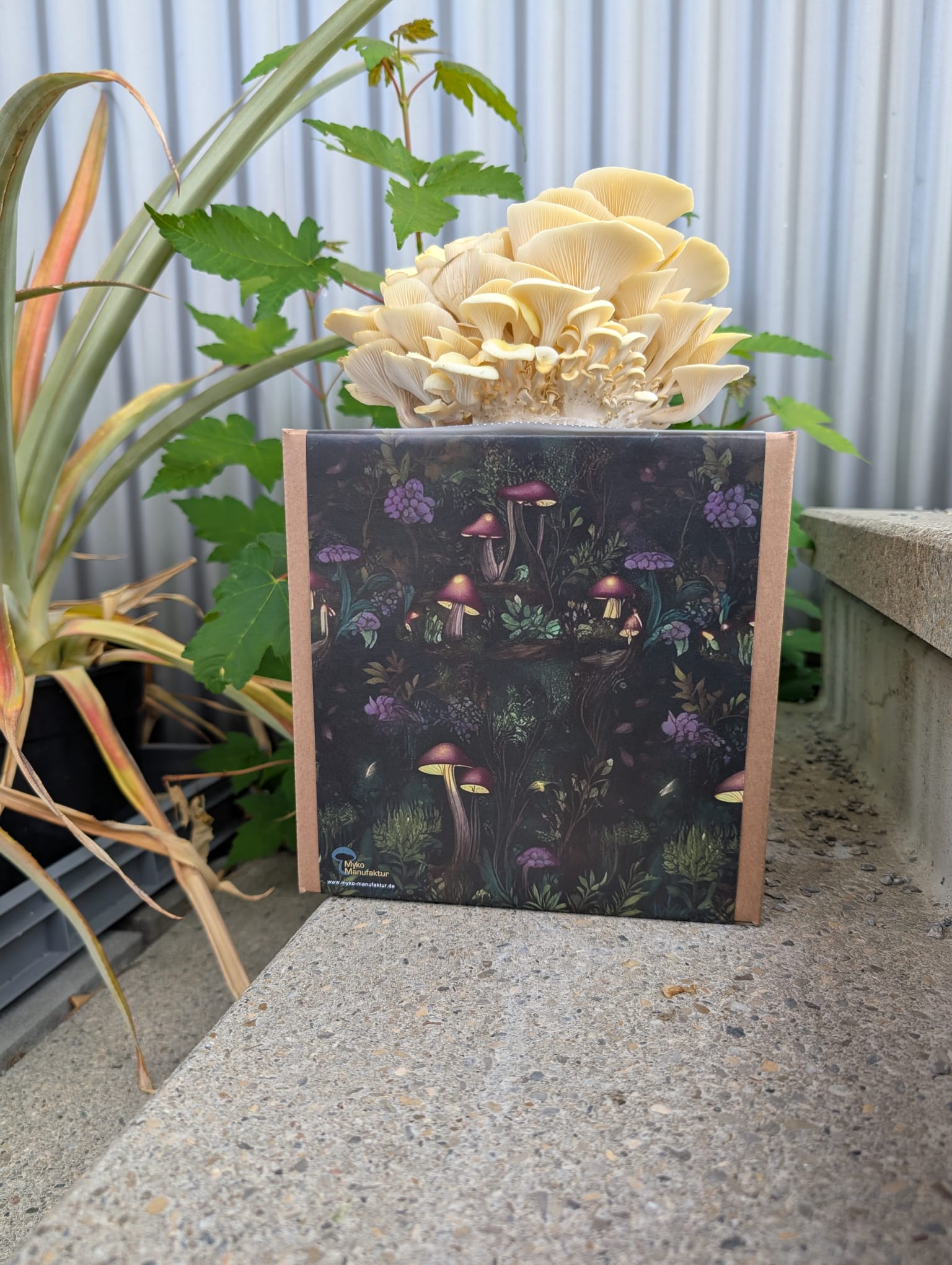 Coltura di funghi ostrica al limone pronta all'uso in una myco-box