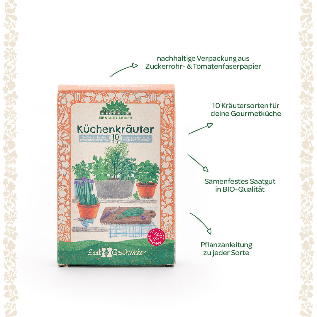 GESCHMACKSEXPLOSION FÜR DIE KÜCHE: Dieses samenfeste Saatgut-Set enthält 10 ausgewählte BIO-Kräutersorten wie Basilikum, Dill, Petersilie und Thymian. Perfekt, um Salate, Soßen oder Speisen zu verfeinern und Frische direkt an den Kochplatz zu bringen.