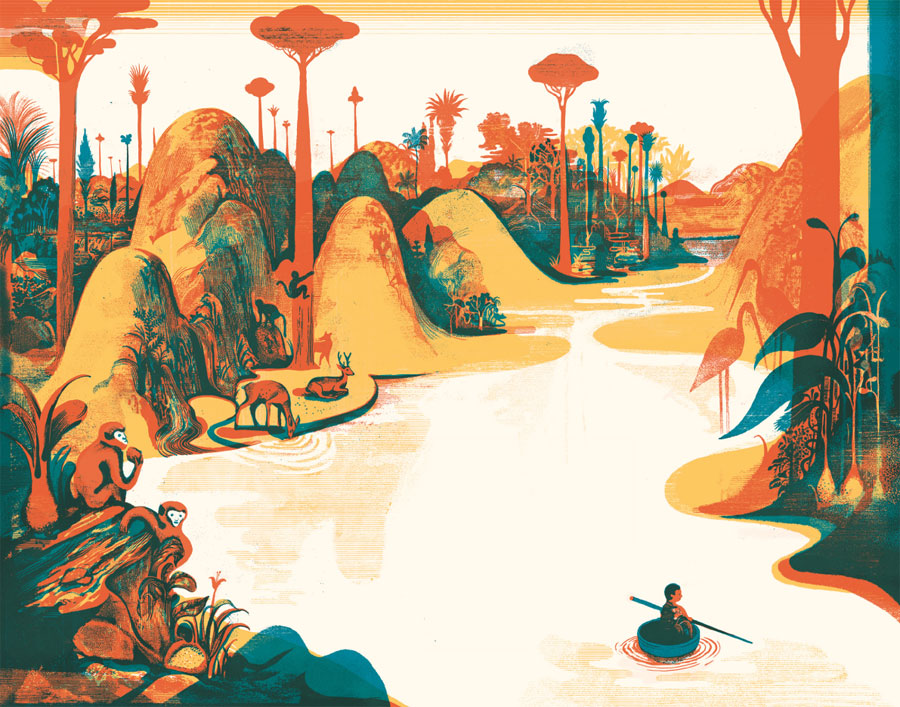 Sehr liebevoll ziehen die Eltern den Jungen auf, bis ihm eines Tages klar wird, dass er nicht weiter wachsen wird. Er verlässt also sein Elternhaus und begibt sich auf die Reise, um seinen Platz in der Welt zu suchen. Und da er sich als Schwertkämpfer, als Samurai, versteht, rüstet er sich entsprechend aus: Eine Nähnadel ist sein Schwert, eine Suppenschüssel sein Boot, und als Ruder benutzt er Essstäbchen.