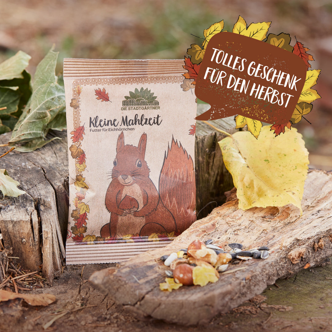 Eine Handvoll hochwertiges Futter für unsere flinken Freunde. Wettergeschützt in einem kleinen Schälchen servieren oder in einem Freiluftbuffet kredenzen - so können die Eichhörnchen sich ideal bedienen.