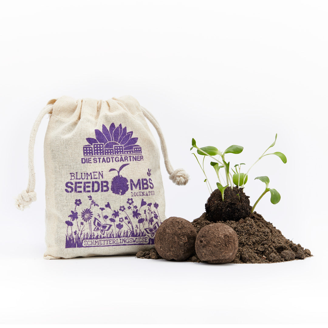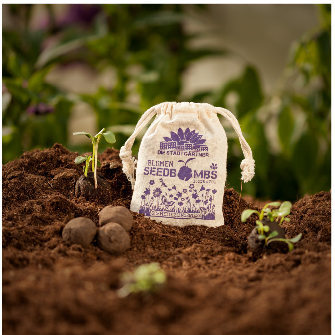 Samenbomben "Schmetterlingswiese" im Jutebeutel